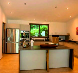 Europäische Gourmet-Küche: Modernes Design, voll ausgestattet mit hochwertigen Geräten (inkl. Thermomix, TV und Waschmaschine).